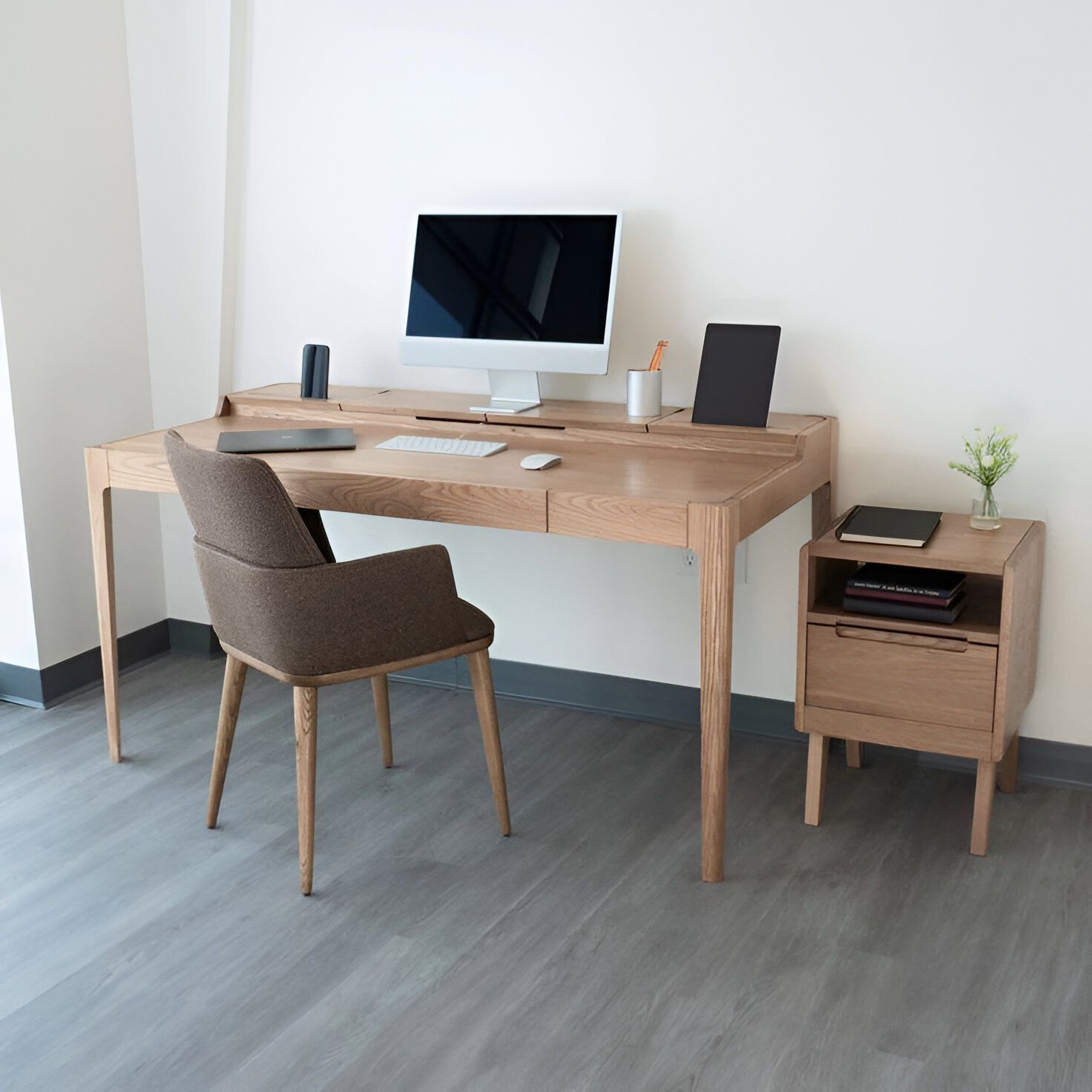 این میز از با کیفیت ترین چوب های جنگلی وام دی اف درجه یک وبا کیفیت با روکش چوب بلوط ساخته شده که مقاومت وزیبایی آن را چندین برابر کرده همچنین دارای یک عدد کشو با قابلیت تاچ و ریل سه تکه فلزی که بازوبسته شدن کشورا نرم، آرام وروان کرده اند در این محصول از بهترین یراق الاتی استفاده شده که بسیار بادوام و باکیفیت هستند .